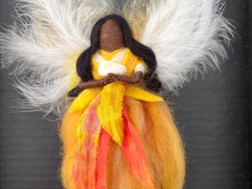Each angle is delicately crafted with wool from sheep and/or alpaca. Each angel is charged with Reiki energy for the intent to provide healing to its new owner.. Each angle is named and comes with a genuine crystal. No two are alike. I can also custom make angle with desired crystal and colors. Selection and price may vary. Available at both locations.